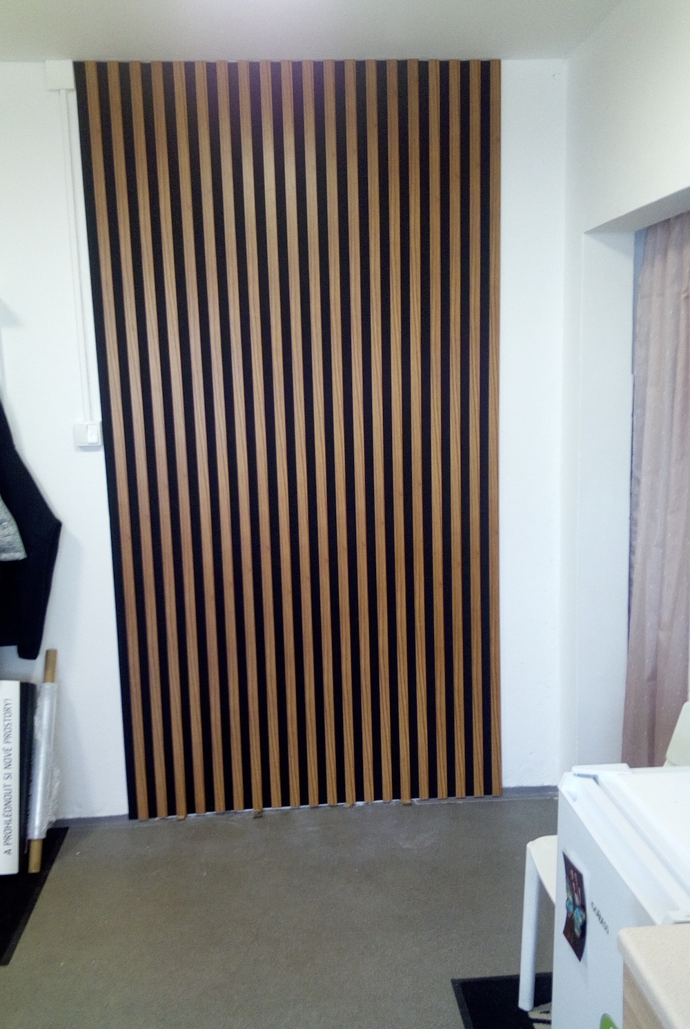 Realizace dodávky a montáže akustických dekoračních panelů na černém filcu.
